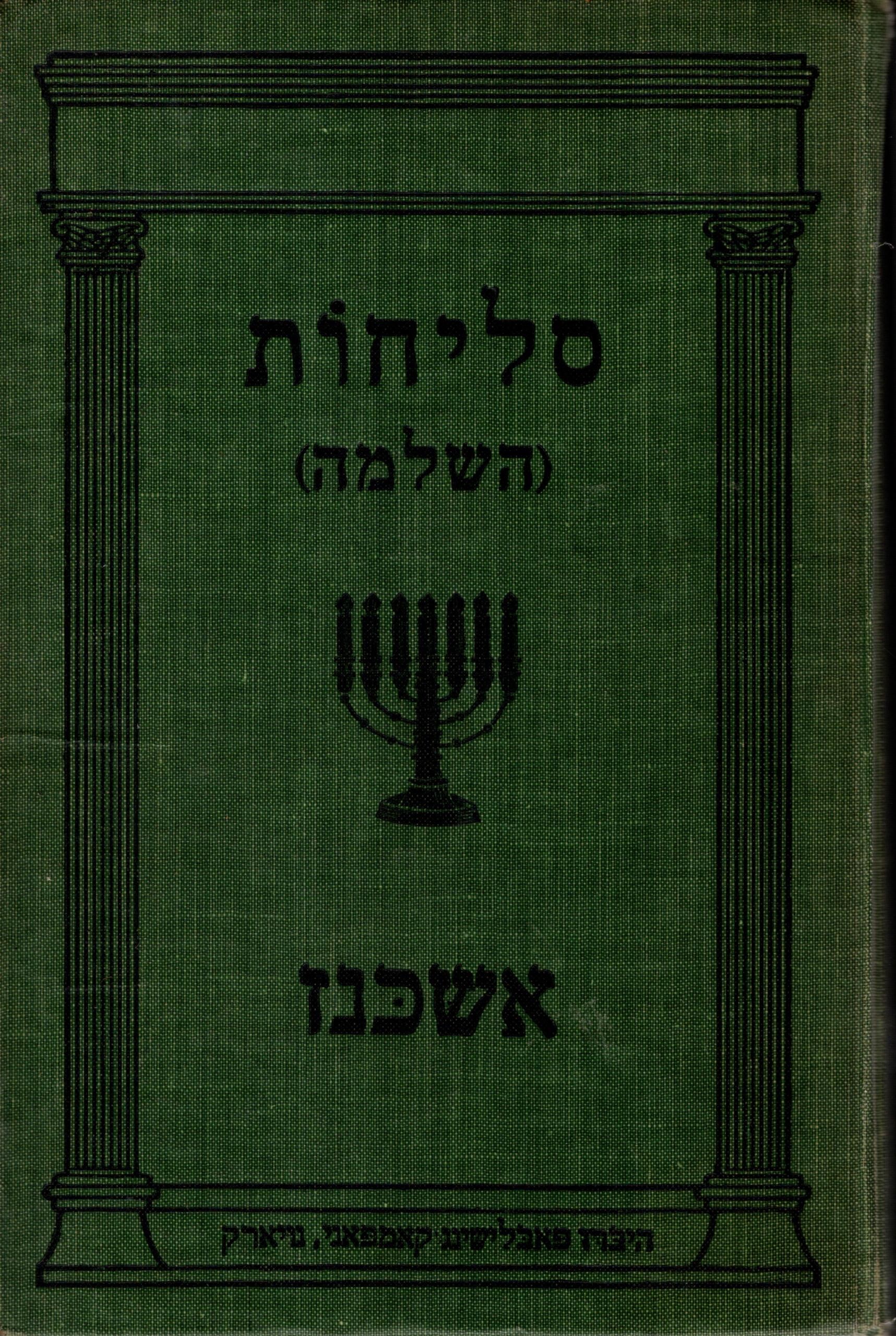 Seder Selihos (Ha-Shelamah) Ke-Minhag Lita Reysin, ve-Zamot Yesto. Um ale zolen fershtehn di Tefilos, hoben mir matik geven di ale tefilos oyf Ivri Taytsh. Oykh hoben mir a vek geshtelt di Selihos fun yeden tog ke-seder oyf'n ort, kede der mitpalel zol nit dirfen zukhen. New York, Hebrew Publishing Company, c. 1920. Small octavo, green cloth with black lettering, 286 pp., yellowed paper. Hardbound. Good. Text is in Hebrew with a full Yiddish translation. (39941)      $20.00
